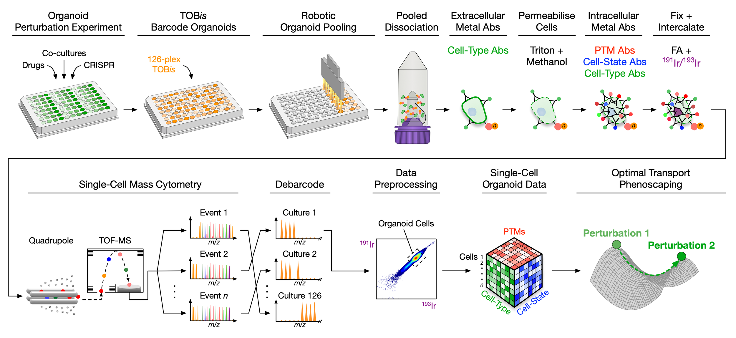 The CyTOF XT is the latest automated mass cytometry platform from Fluidigm. It can measure 50 proteins/PTMs from hundreds of organoid cultures at single-cell resolution. The lab uses mass cytometry to study how oncogenes regulate cell-cell communication across multiple cell types in organoid models of cancer. You can read more about this Thiol Organoid Barcoding in situ Mass Cytometry (TOBis MC) method in Qin et al., Nature Methods, 2020 and Sufi & Qin et al., Nature Protocols, 2021.